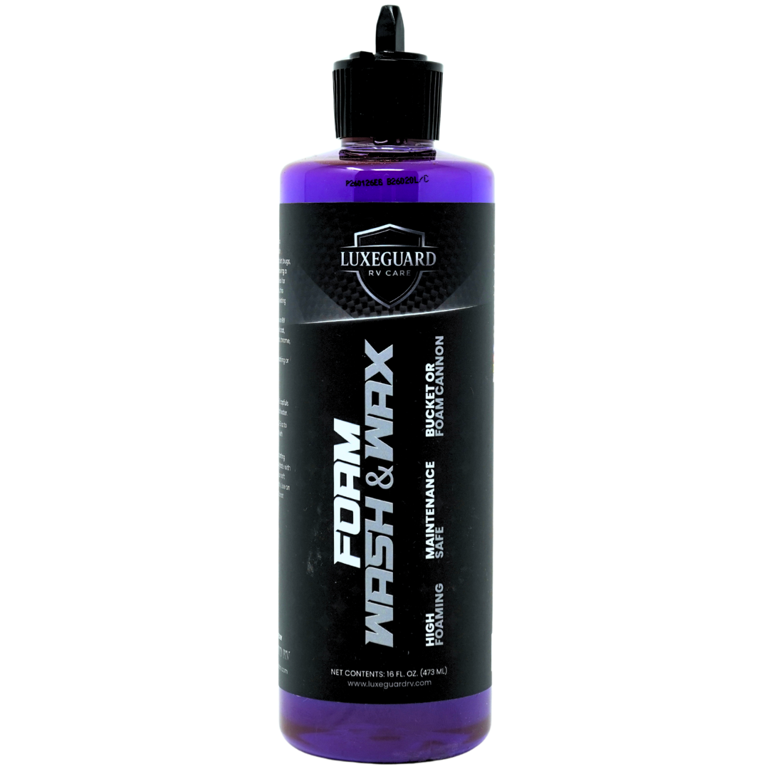 Foam Wash & Wax is a high-foaming RV wash designed to safely lift dirt, bugs, and road film while leaving a